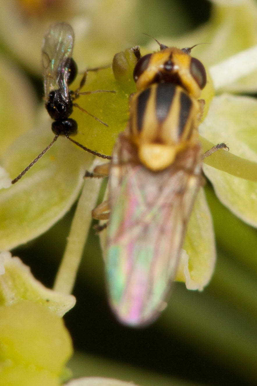 very small 2-3 mm flies. yellow with dark lines on thorax, at the moment no idea even about family. mwa66 attached the following image: ![]() [118.09Kb] |