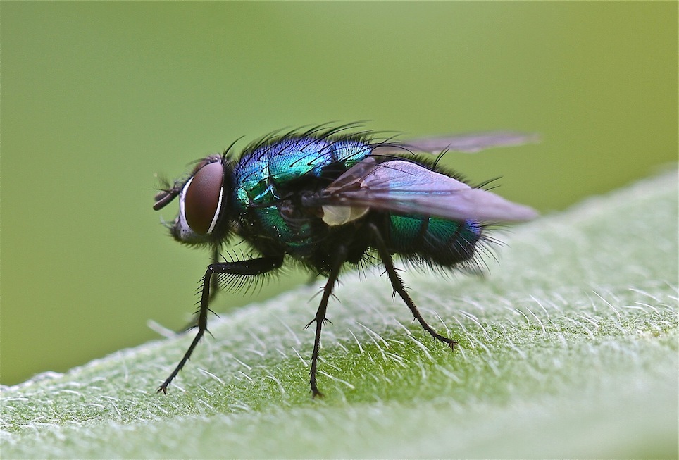 Plumose arista ... big eyes ... sloping face ... Calliphoridae ... Lucillia