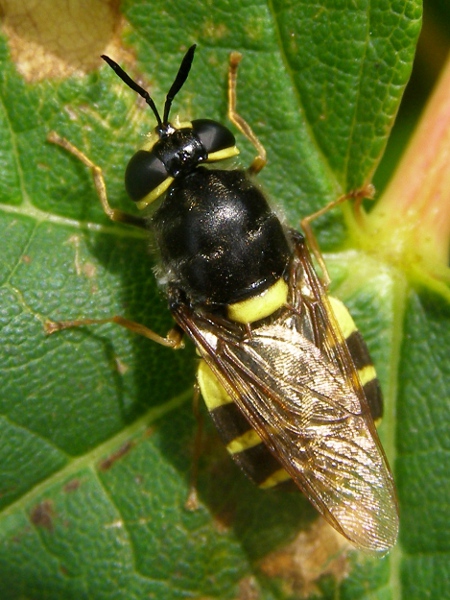 I think this is a female Stratiomys potamida. Can anyone confirm this? Photos taken beside a lake in Reading, UK on 2011-08-19. tristram attached the following image: ![]() [143.25Kb] |