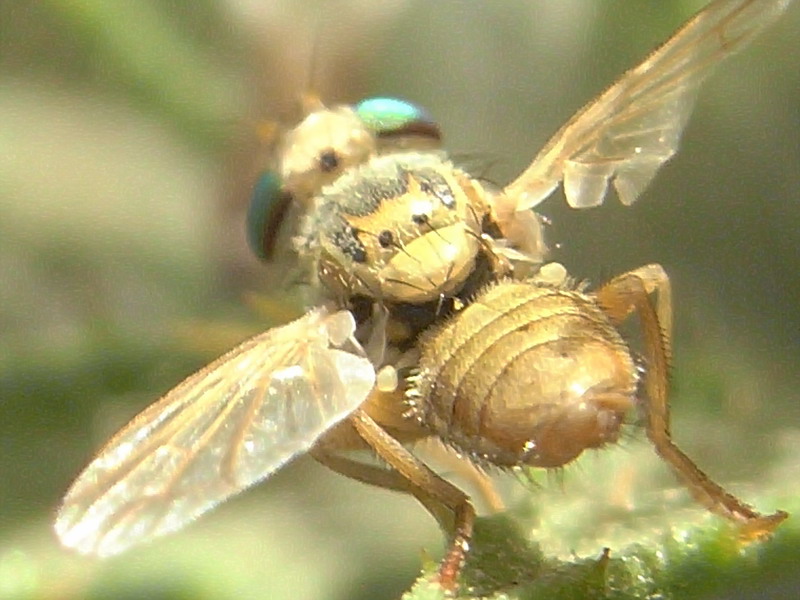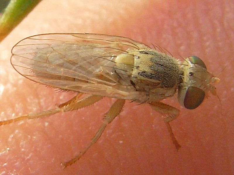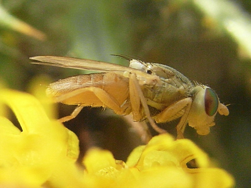 Terellia luteola or virens. Abdominal setulae hidden. Size unknown