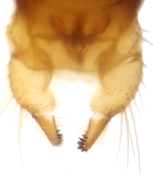 I agree with Ula mollissima (=crassicauda): shape of aedeagus and U-shaped notch on caudal margin of sternite 9 moderately deep. |