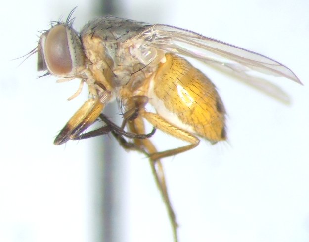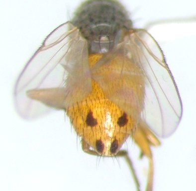Collected a number of these, both males and females, at UV light (June 10, 2011) in Charlotte County, Florida, USA. Males are similar but the more anterior abdominal spots are more elongate, and the females have slightly darker legs. Following are pictures of the female, can post male images if it would be helpful. Edit: Could this be the Bermudagrass stem maggot, Atherigona reversura, relatively new to the SE United States? bradbarnd attached the following image: ![]() [33.52Kb] Edited by bradbarnd on 12-11-2011 01:47 |