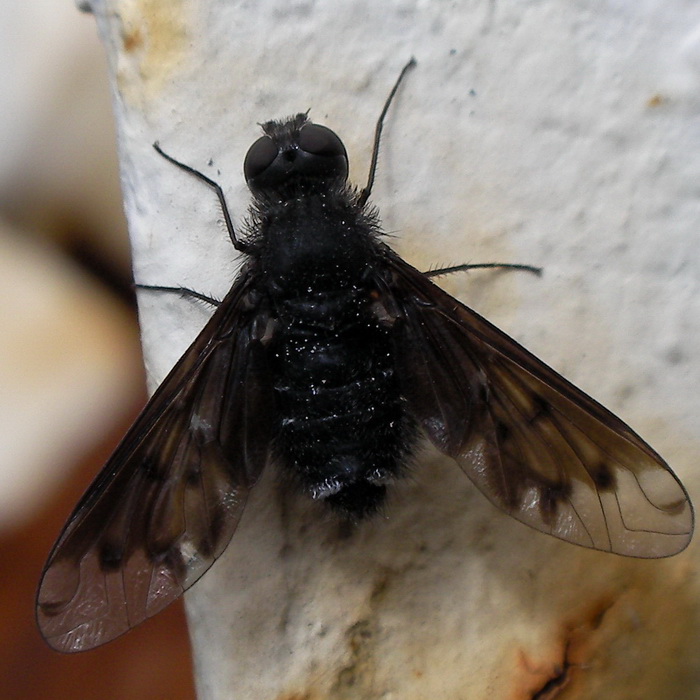 This is a Bombyliidae. This species looks like a member of the Anthrax genus. In The Netherlands it would key out to the species of Anthrax anthrax (brilliant name btw.), due to the large darkened patch on the wing. Greets, Ectemnius |