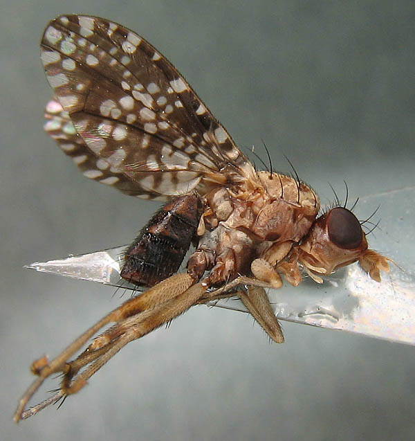Hi Carnota, A well known error. It's not a Tephritid but a Sciomyzid: Trypetoptera punctulata. The first name meaning 'with the wing of a Trypetid (old name for Tephritid)', so you're not the only one making thisslight mistake. I get them all the time as supposed Tephritids. John |