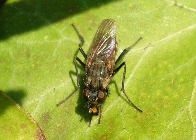 Today I found this fly at Leerdam, Netherlands. It was appr. 8 mm long and most of the time it ran nervously through the leaves of plants. It doesn't look like anything I have seen before, and although it looks quite characteristic, I have no clue about even the family. Who could help? Thank you in advance! Jan Zwaaneveld attached the following image: ![]() [135.02Kb] http://slamenietd...web-log.nl |