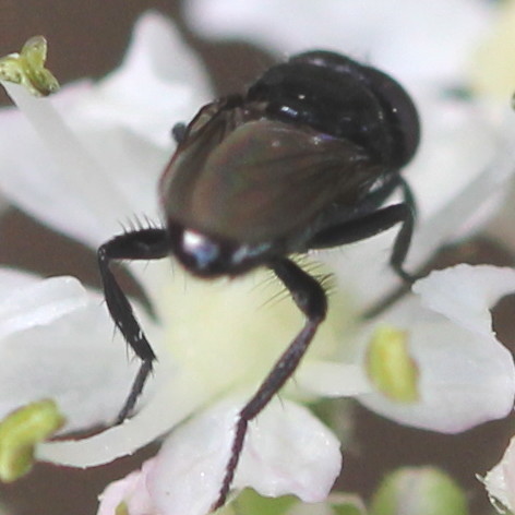 Hi Chris, I got a second one on Thursday (8th) from the same location, a tiny patch of resurgent Hogweed. Under the 'scope the wing looked slightly darker, but no bristles on the end of the abdomen (sort of apparent in this image). Otherwise the same wings-folded compact stubby appearance and busy manner If you're sure then you don't need to see specimens, the first one is 31/07/13 TQ370861 Hackney Marshes There's about 40 native black Poplars here (P. nigra var. betulifolia) which cover everything with a thick layer of 'artificial snow', plus other hybrid Poplars, if that means anything. Perhaps the host has something to do with those species Do you think the second fly is the same, despite the smoother abdomen? I've several more images I can crop & add if needed jeremyr attached the following image: ![]() [44.4Kb] |