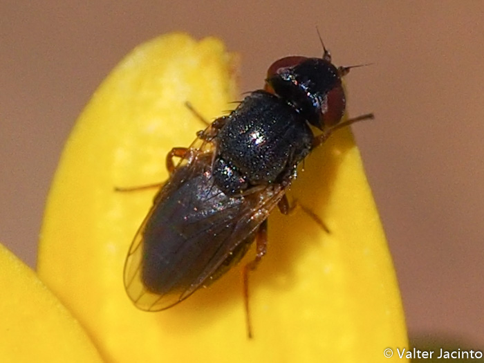 I think Calamoncosis sp., Chloropidae, compare with the link: http://www.dipter...d_id=61399, but in your case the scutellum is shorter, and the typical punctured ocellar triangle of Calamoncosis spp. cannot be seen. Sincerely yours Sara |