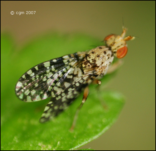 Stephane Lebrun wrote: Not Tephritidae. It's Trypetoptera punctulata (Sciomyzidae). It is a trap, remind of a Tephritid indeed. ![]() Greetings. Ohh, thanx a lot Stephane. Now that you mention Sciomyzidae I think I also see that the eyes are banded. Didn't think of it before. |