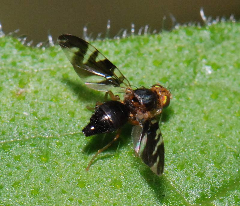 Hee Philippe, Photo's would be much easier. But nevertheless I can give you some kind of answer. Acidia cognata is a rather large orange-brown species with, as you say, modest markings on the wings, mainly slender orange-brown-yellow bands. The black specimens you found on the internet, can'd be A. cognata, I presume it's Euleia heraclei, also a leafmining species that can be found resting on leaves of Tussilago, but won't mine these leafs! Of this latter species there are two forms, dark and orange-brown, similar wingpattern, only different colour. See also http://www.diptera.info/forum/viewthread.php?forum_id=5&thread_id=8230 Best wishes, John |