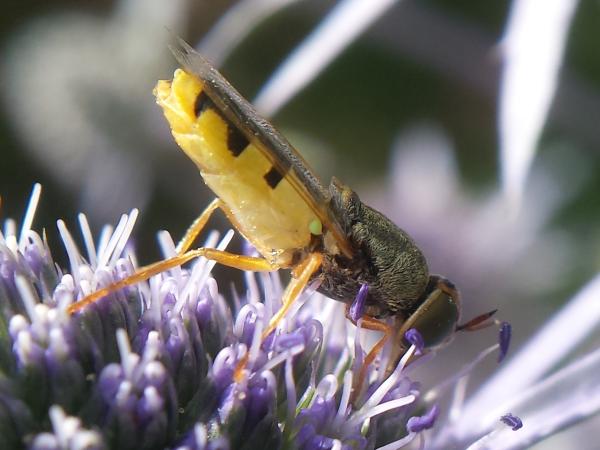 Hi, today 2019-07-14 on Eryngium planum: Abdmonen is yellow/black - only the halteres are green. Is it Odontomyia angulata though? Thanks a lot for ID! Eric 1. dorsal: eklans attached the following image: ![]() [31Kb] Edited by eklans on 05-11-2020 08:51 |
