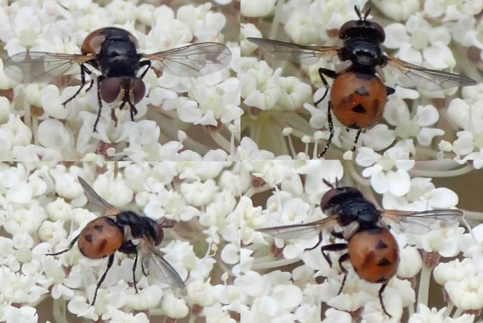 Interesting - I never saw a Gymnosoma holding the wings in that way (plane turned nearly upright), which is typical for Cistogaster... Maik's female here (https://www.dipte...d_id=95014) has a different posture. But I admit that the triangles are very regular, and the C. globosa male should have golden pruinosity on the fore half of the thorax. So this Gymnosoma nitens is intermediate indeed! (What would we do without Theo...) |