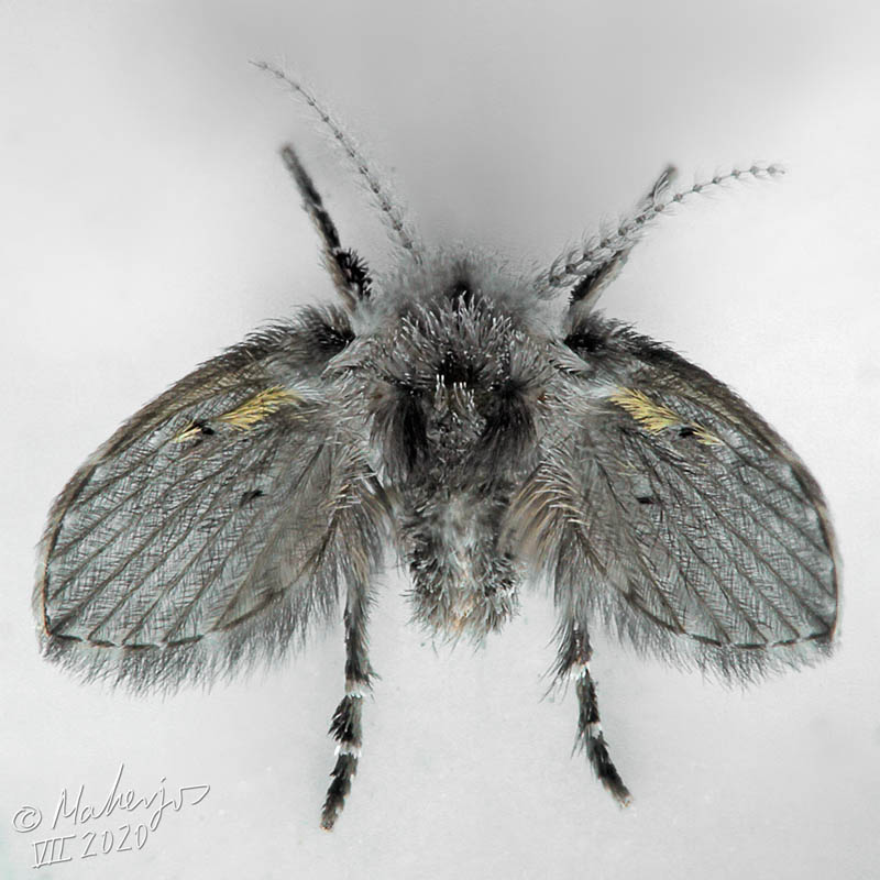 Clogmia albipunctata male. Often the yellow is less clear. |