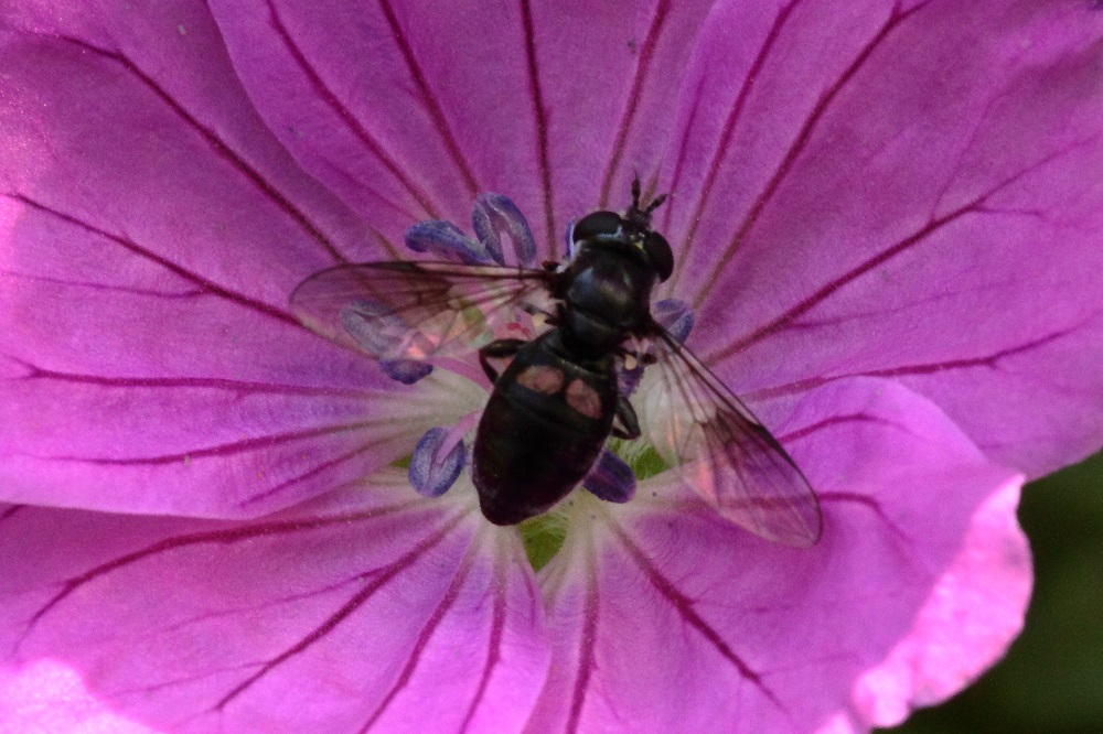 Deutschland, Baden-Württemberg, Landkreis Karlsruhe, Karlsbad-Spielberg, Schwarzwaldrandplatte, 340 m ü. NN, Garten, in Geranienblüte, ca. 3 - 4 mm, Funddatum: 08.08.2020, Danke