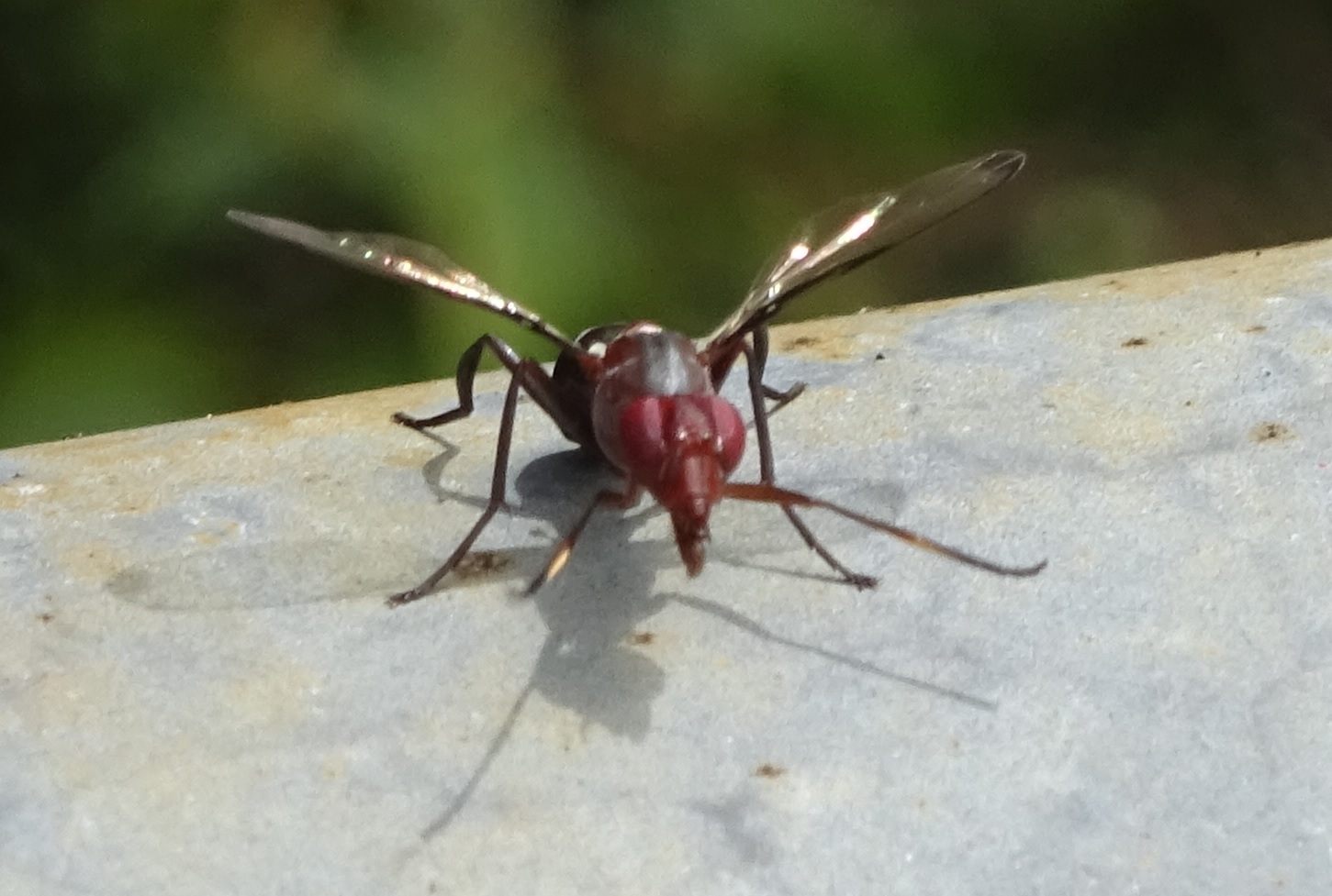 Try Cephalia rufipes ( see https://diptera.i...d_id=40913 )