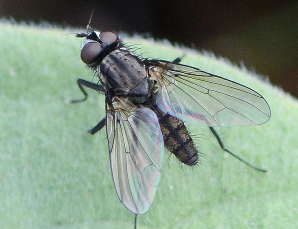 Delia. Note the large number of short bristles below the right hind tibia. |