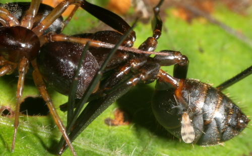 ? Cecidomydid kleptoparasite on ant killed by a spider
