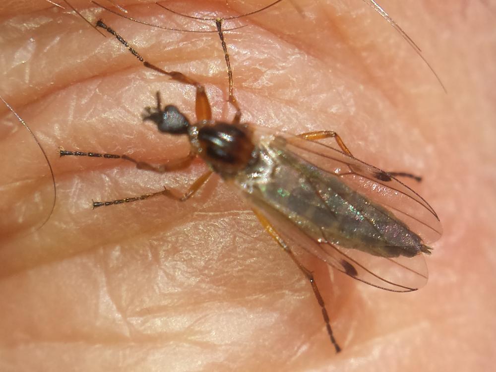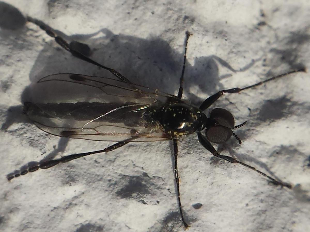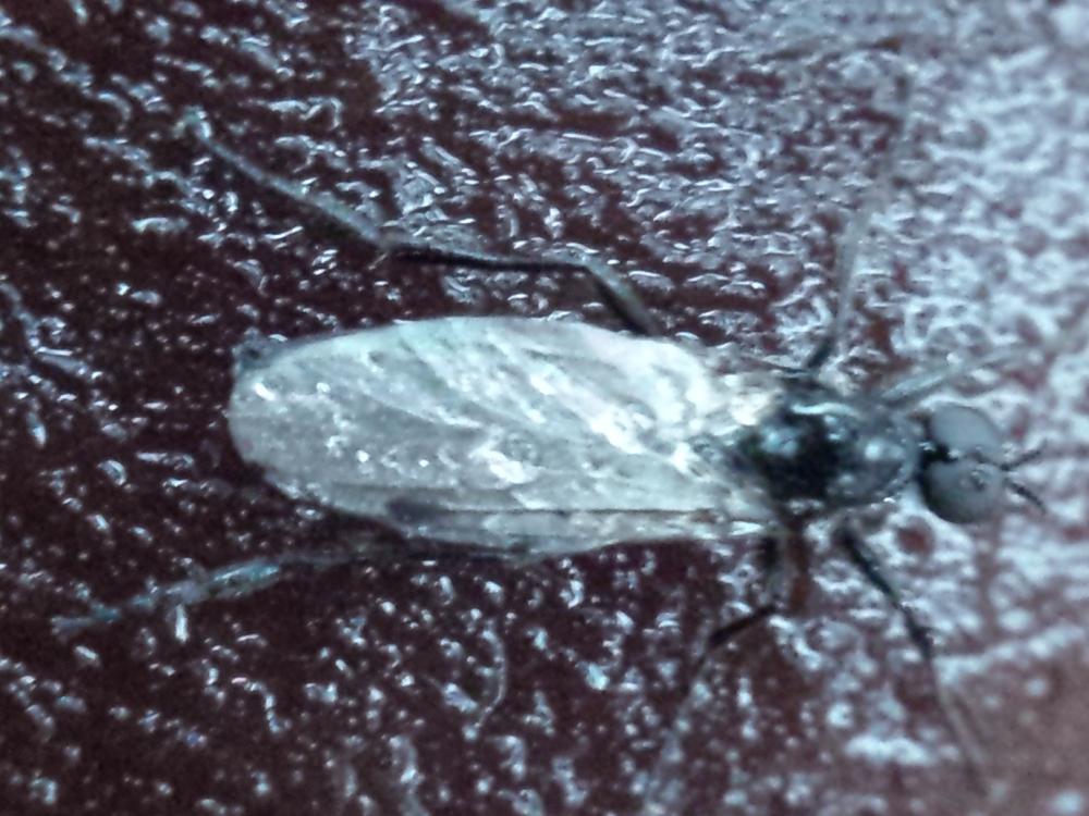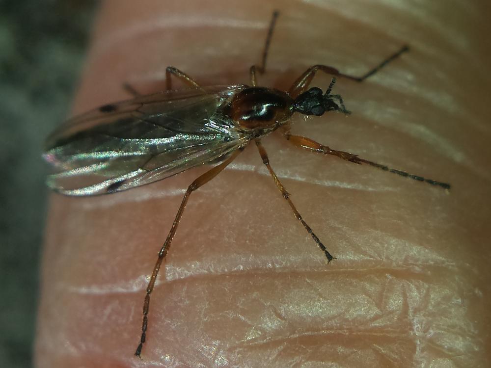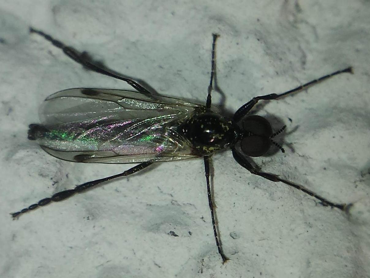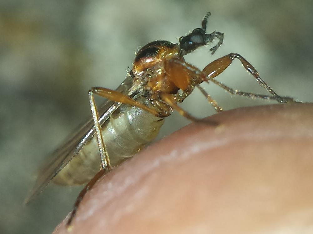 male of 2016-11-16 on a mushroom, wet morning and wet Bibio but showing the milky wings